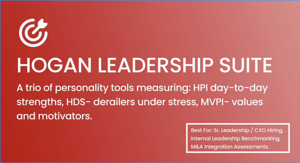 We use industry-standard, scientifically validated tools (like Hogan and EQ-i) as one part of a broader picture. Our HR experts synthesize these results with competency-based simulations to generate a predictive performance score. It’s not just a test; it’s a future performance forecast built on 20+ years of HR expertise and outcome data.